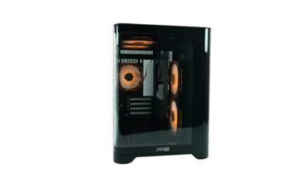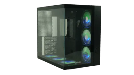 • Materiales: Malla frontal para flujo de aire optimizado y vidrio templado lateral