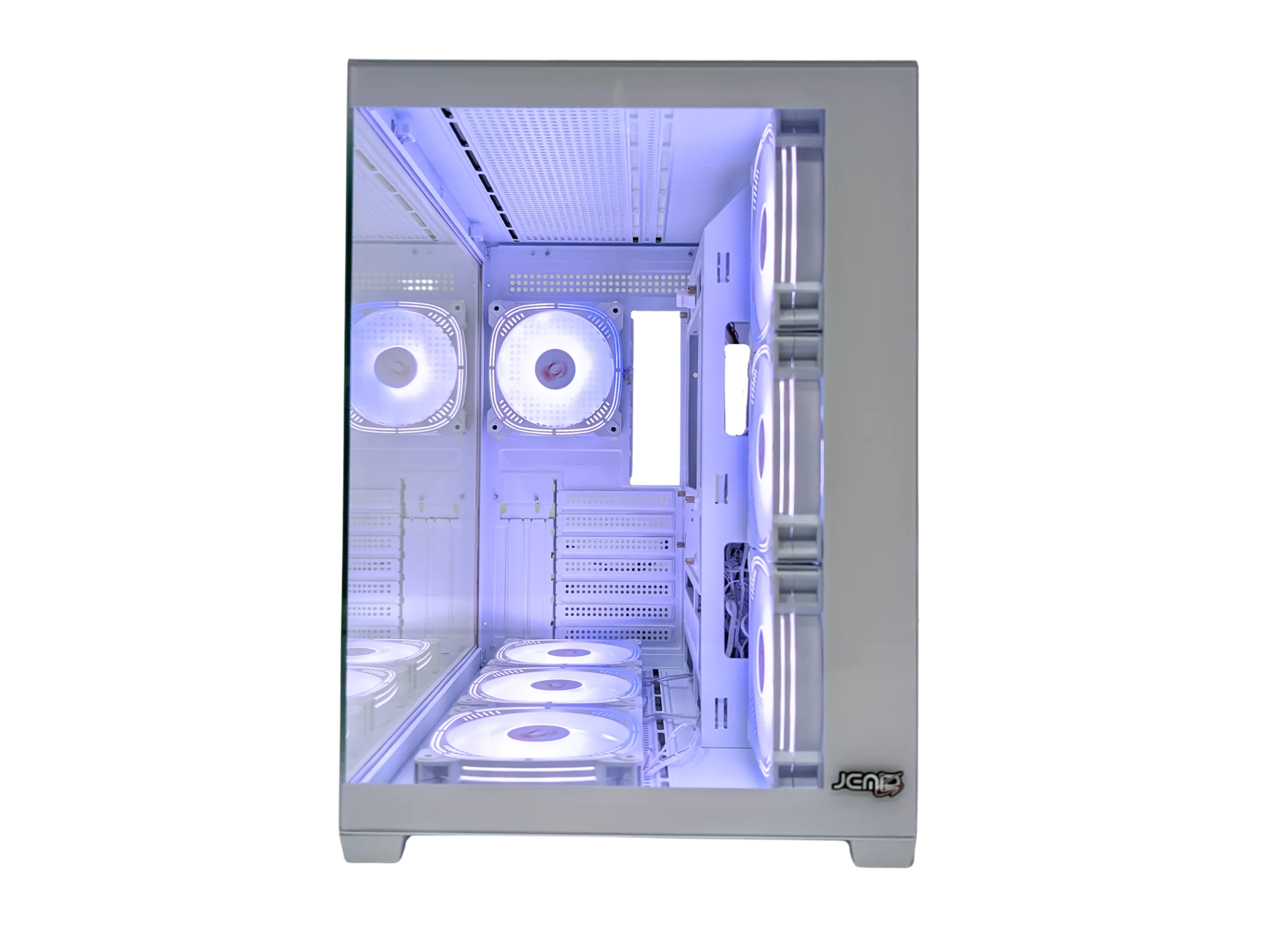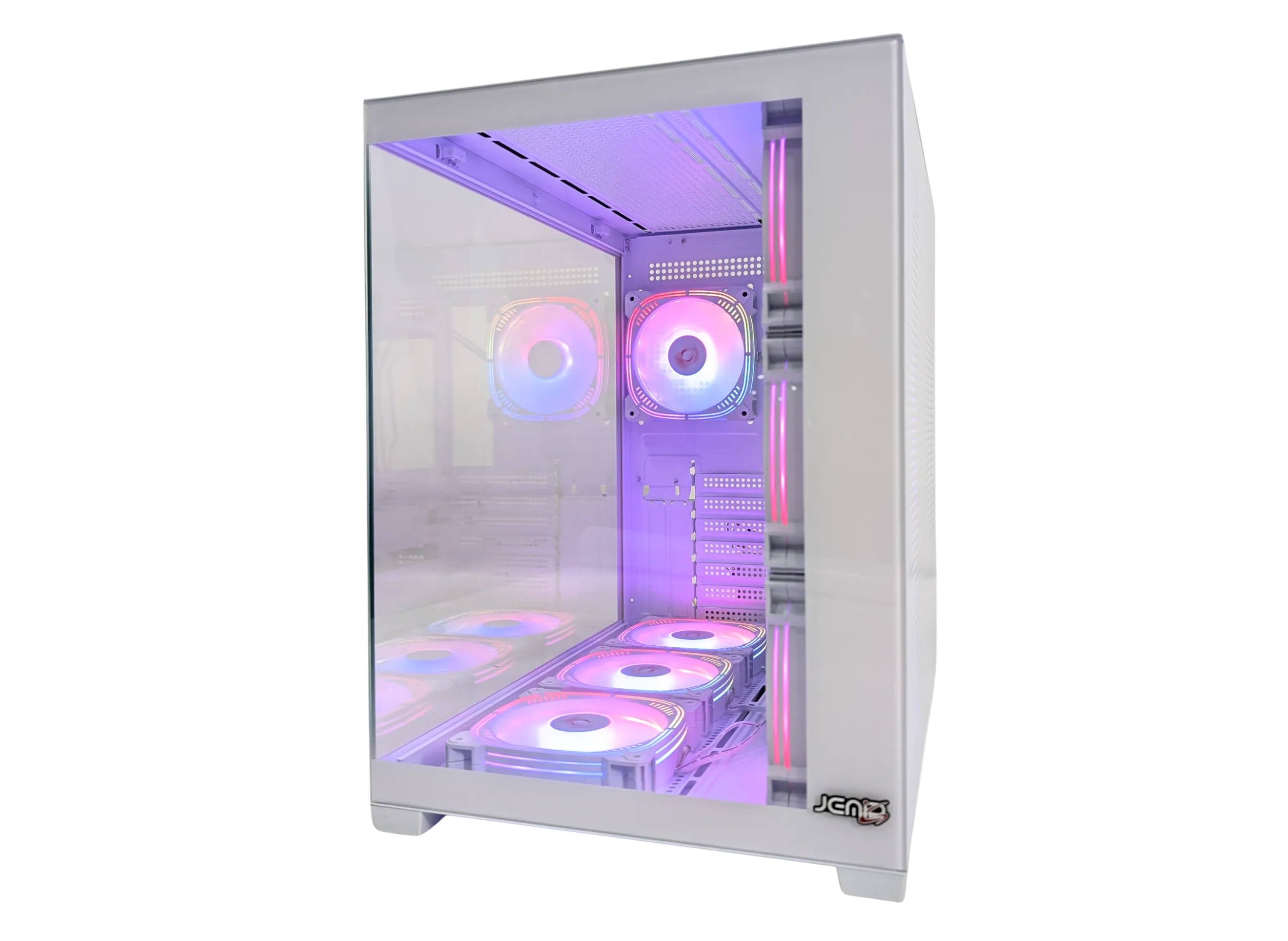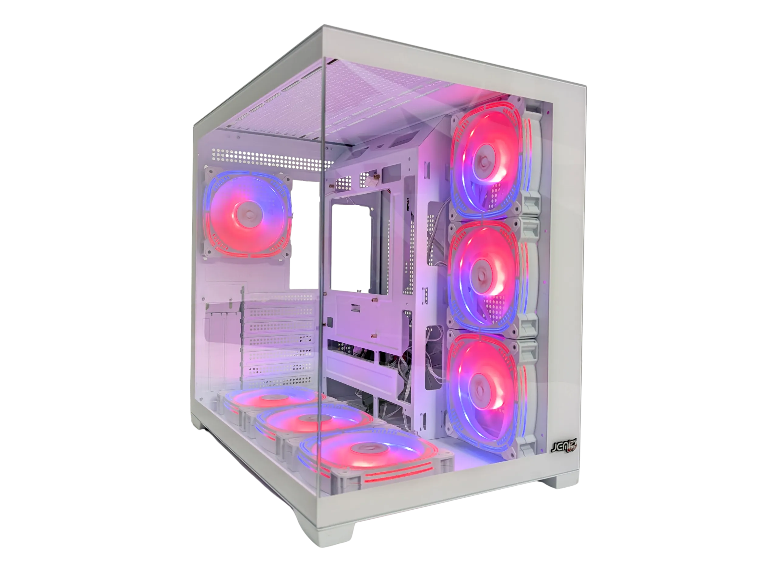 • Ventilación: Incluye 7 ventiladores ARGB de 120 mm: 3 en la parte inferior (ARGB), 3 en el lateral derecho (ARGB) y 1 en la parte trasera (ARGB).